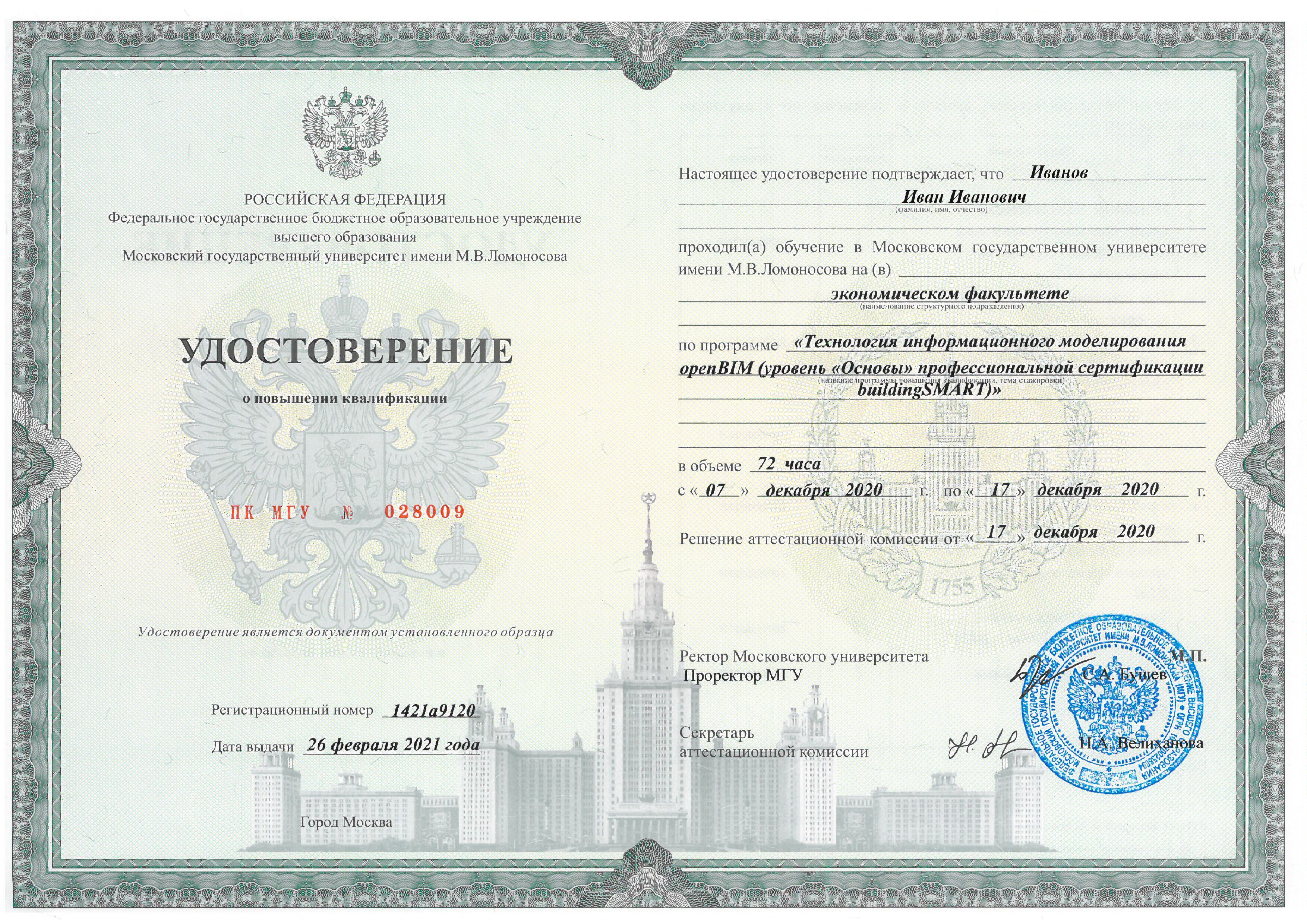 - ✔ Удостоверение о повышении квалификации МГУ им. М.В. Ломоносова